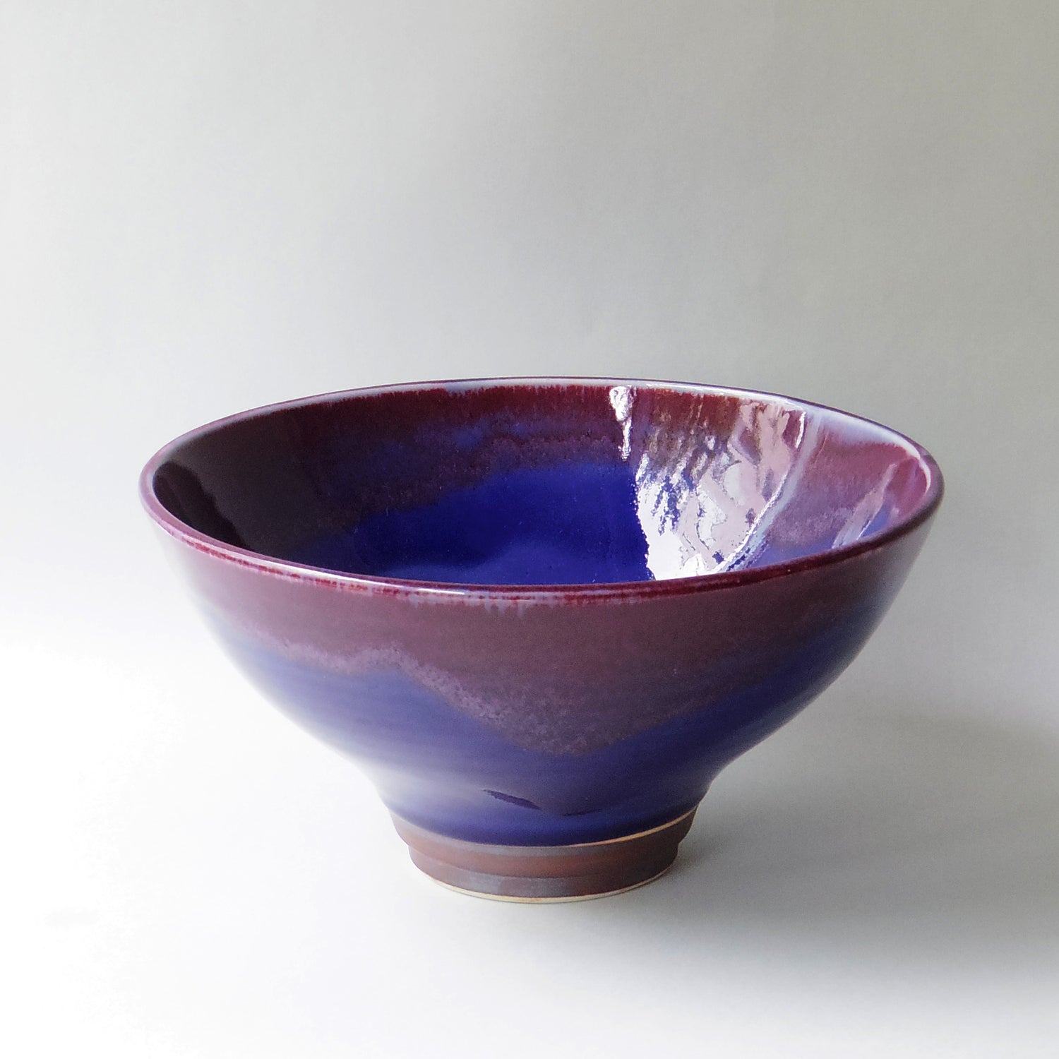 紫辰砂は焼成する温度帯・窯の場所で全く違う表情で焼きあがる不思議な釉薬です。その面白さにはまってしまう陶芸家もいるほど。白いスープの鶏白湯麺やエスニックな麺におすすめです。食材を引き立てるのでサラダボウルなど、用途も広いうつわです。